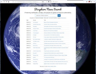 The new “Biosphere News Search” site at http://search.ecointernet.org/ tracks global climate and environmental news, as well as related issues as varied as rainforest conservation, sustainable agriculture, indigenous rights, and human trafficking. The best ecology news content from tens of thousands of news sources are continuously identified 24/7, algorithmically rated, networked on social media(2), and loaded into the new biosphere search engine.
